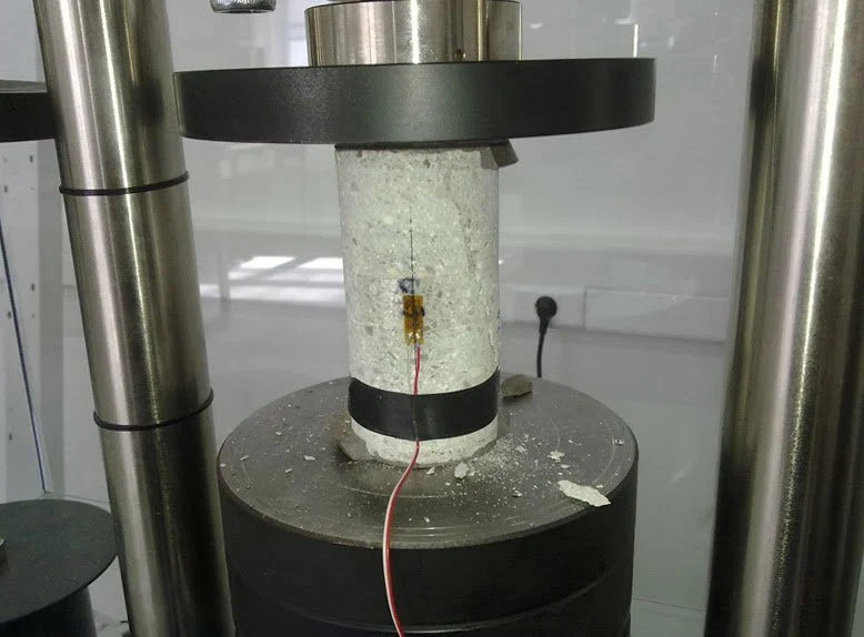 Laboratory testing of concrete samples to measure true compressive strength and confirm mix performance.